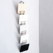 壁や梁等しっかりした土台のある場所に、螺子や釘で固定してお使いください。お気に入りのCDやポストカードを飾ってお部屋のアクセントに、玄関に展覧会DMを掛けておけば、出掛ける時に目に入り、見逃すことも減りそうです。使わない時はコンパクトに収納可能です。壁際にwall hookと組み合わせて、または、extensionに掛けて浮遊感を楽しむことも出来ます。用途、お好みに合わせて三種の段数からお選び頂けます。