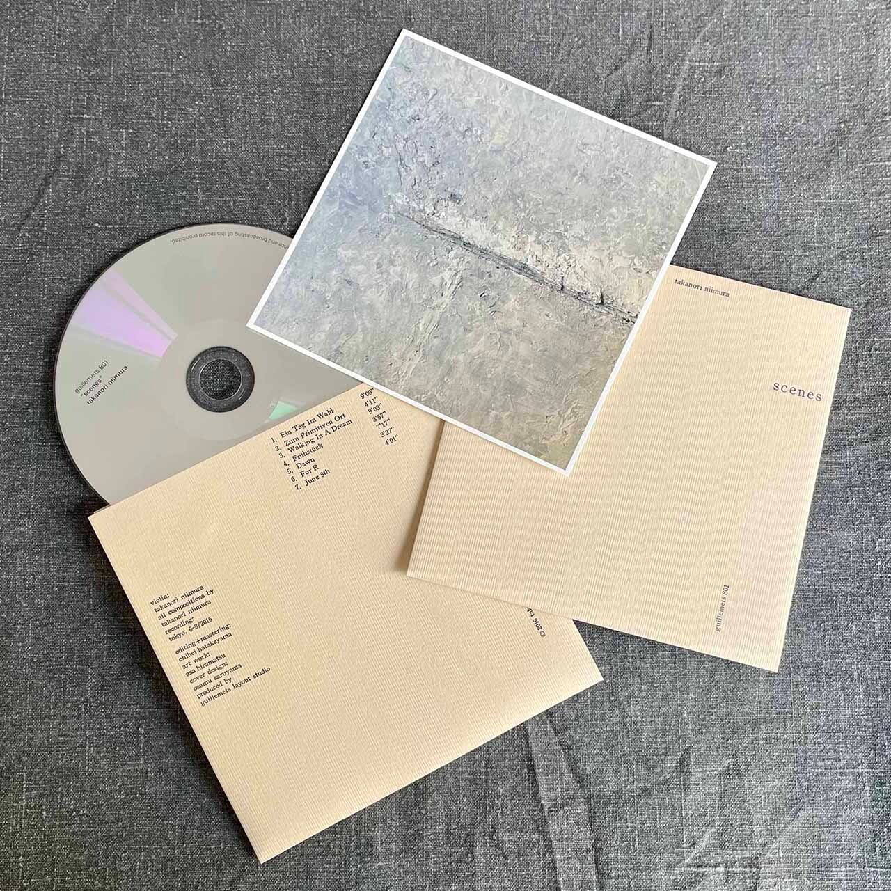 violin and composition: takanori niimura, editing + mastering: chihei hatakeyama, art work: asa hiramatsu, letter press printing: houbunsha printing co., ltd., cover design: osamu saruyama, production: guillemets layout studio