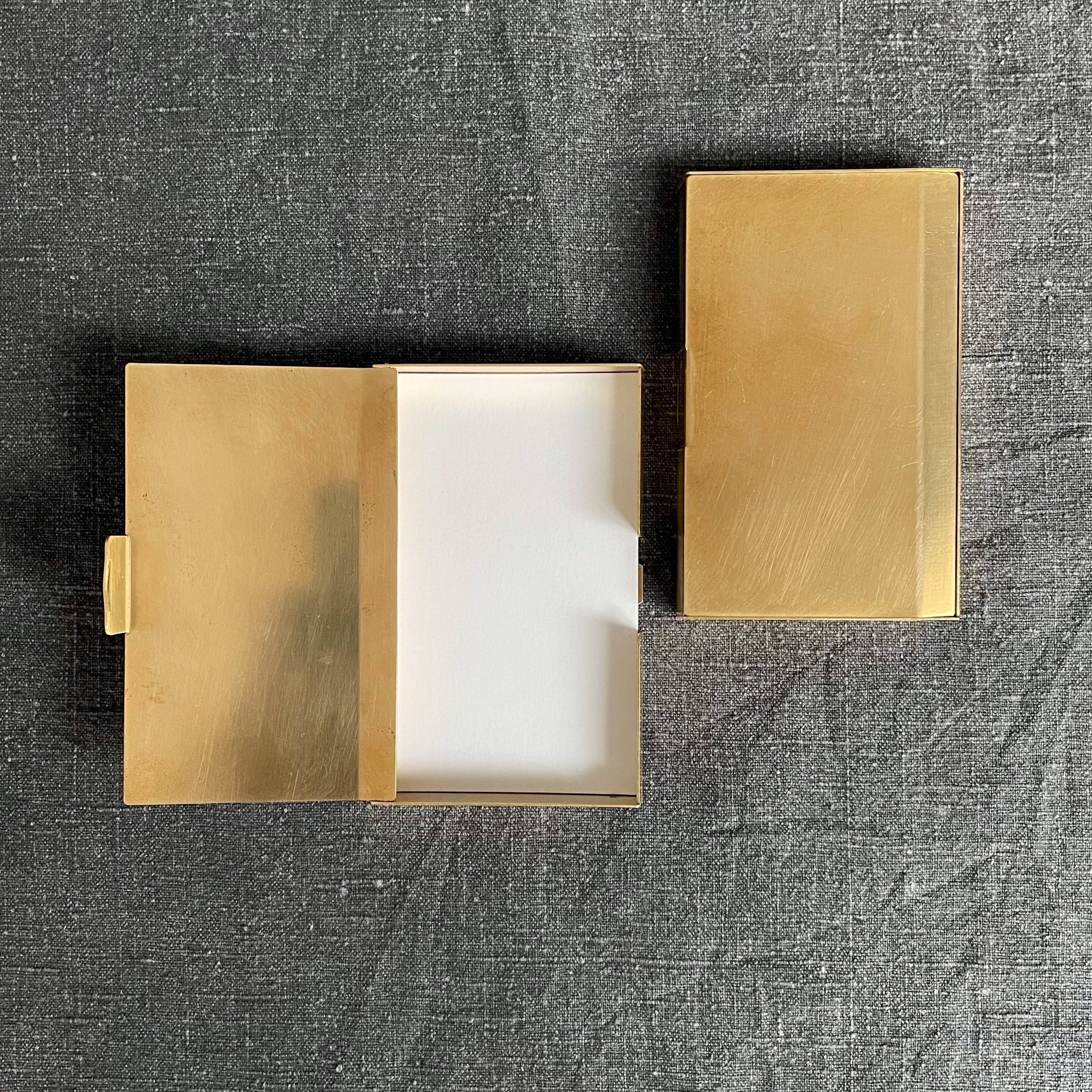 製造を担当する長井製作所の持つ、金属を切る、曲げる、折るといった特殊な技術を効果的に用いたカードケースです。一般的な名刺サイズ(90×55mm)がぴったり収まるサイズ。真鍮とステンレスからお選び頂けます。製作時に表面保護加工は行っておりません。使用するうちに味わいを増す、金属特有の変化をお楽しみください。
